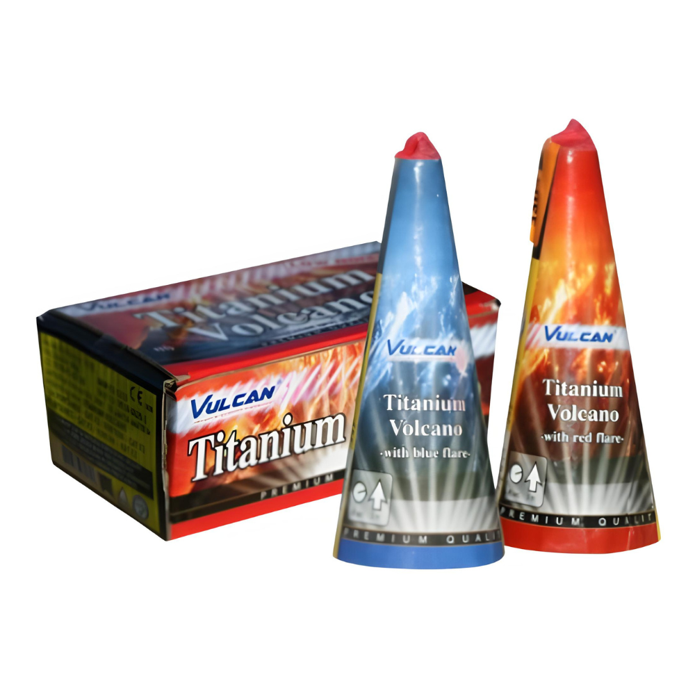 Titanium Volcano – Fontän & bengal – 2 pack med inledande flamma i blått resp. rött som övergår i kraftigt silversprut. Fontäner passar bra som början i ett fyrverkeri med flera olika pjäser.